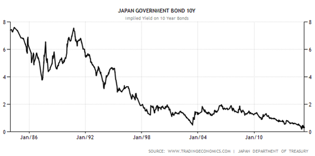 I remember how in 2003 the late legendary Barton Biggs, a strategist for Morgan Stanley, proclaimed in one of his Investment Perspectives that 10-year Japanese government bonds (JGBs) were “the short of the century.” Japan had just gone through 10 years of deflation and the 10-year JGB yields had gone from nearly 8% at the time of the all-time high in the Nikkei 225 benchmark index (at near 40,000 in December 1989) to a hair shy of 40 basis points (0.4%) in 2003.